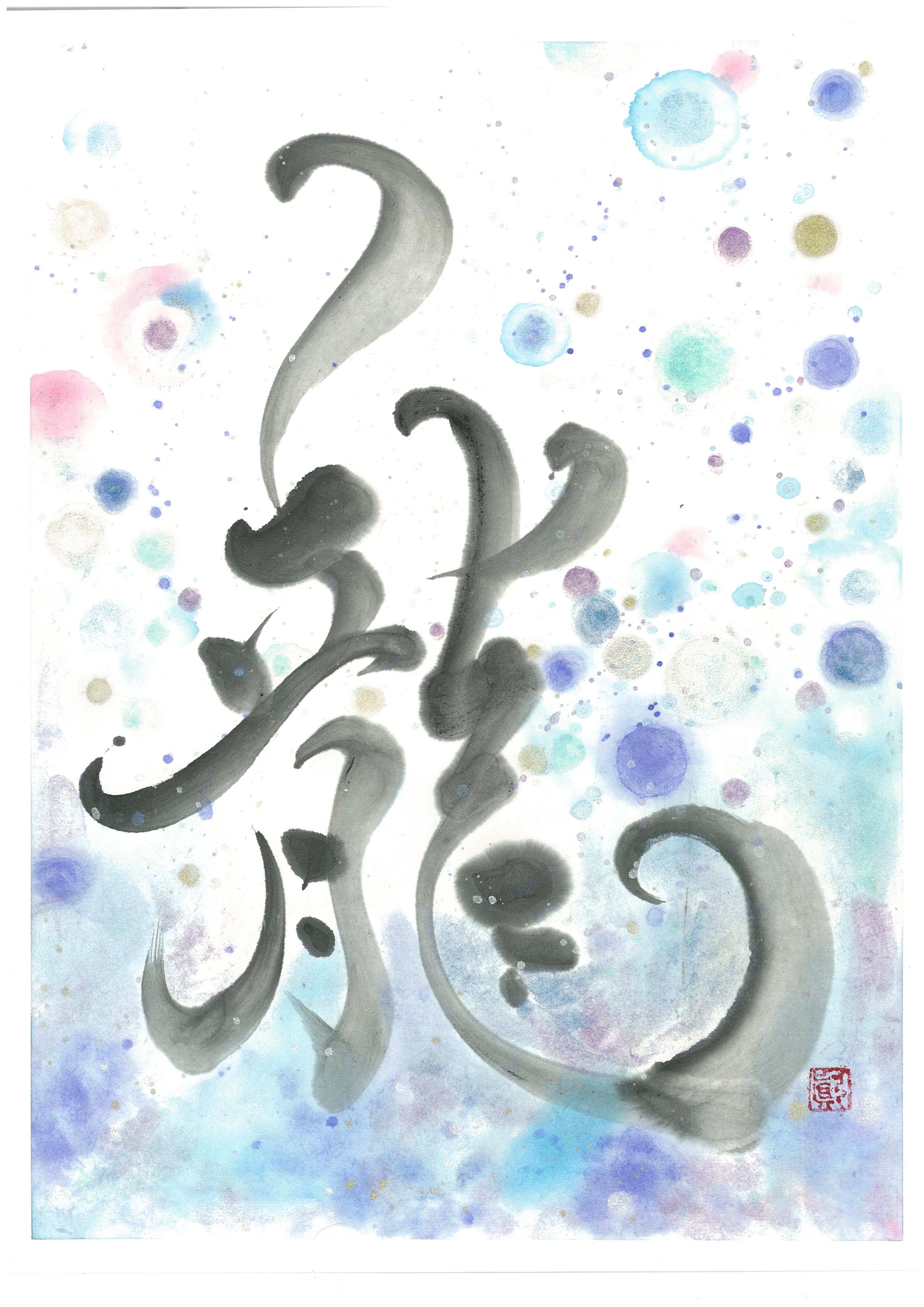 7.【原画】宇宙の流れに乗る 水の龍【書道作品】