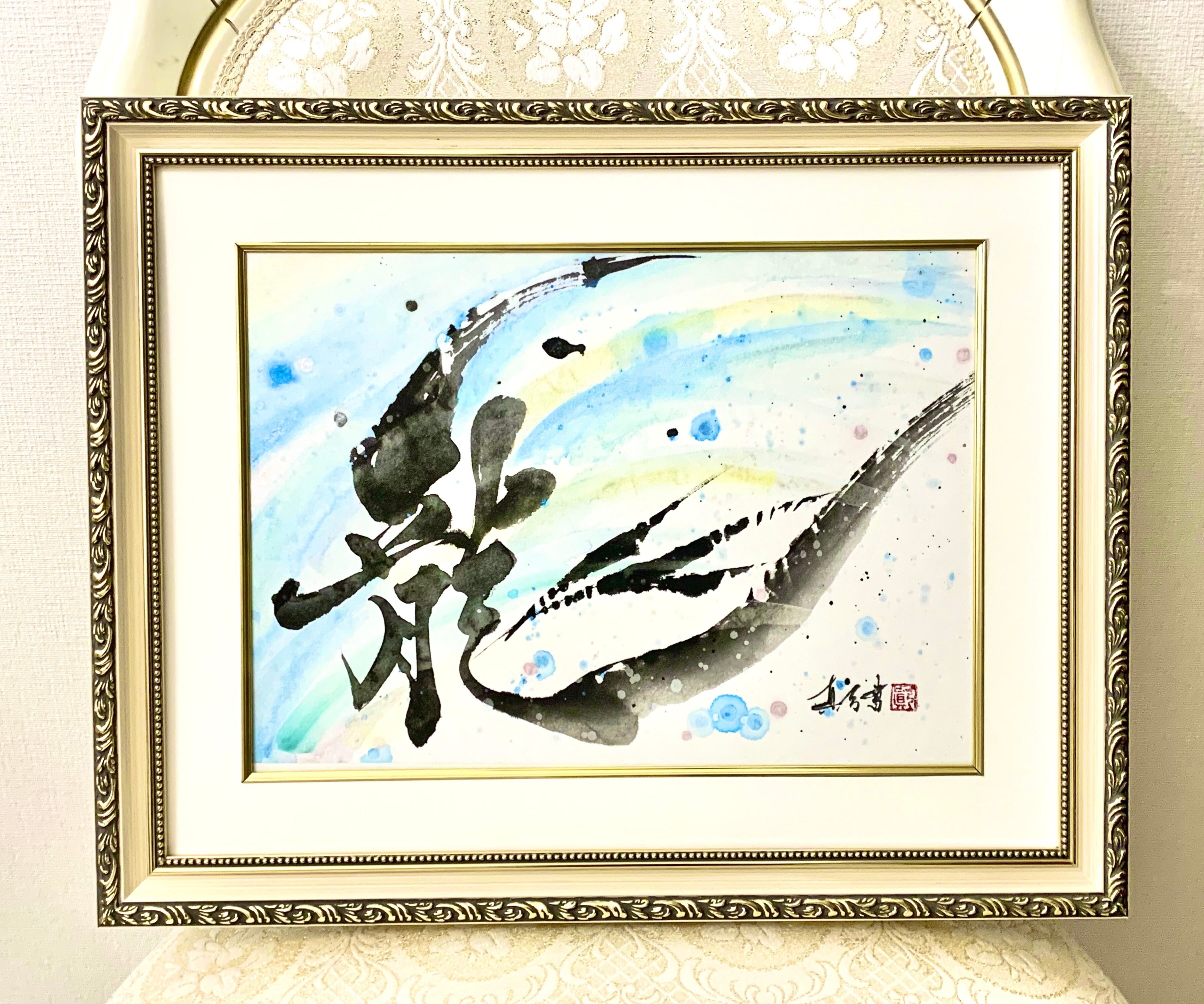 書道家真弓が、風のように自由に、流れに乗りながら生きていけるように願いを込めて書きました。パールが入っていてとても色合いが綺麗です。